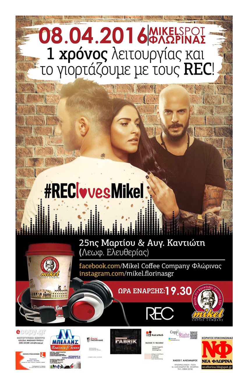 Το καφέ Mikel κλείνει 1 χρόν λειτουργίας και γιορτάζει με το συγκρότημα REC.Παρασκευή 8/4/16 και ώρα 19:30.